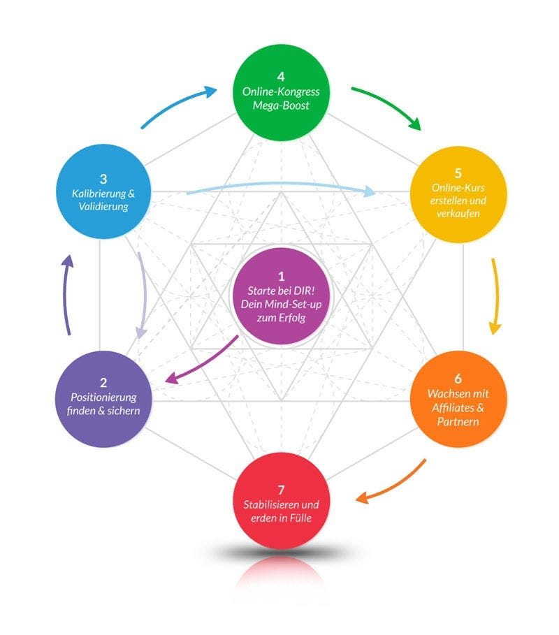 Wir haben unermüdlich daran gearbeitet, dir die besten Gäste zu bringen, wobei wir beinahe alle 7 Stufen (siehe unten) des Online Coaching Unternehmertums beleuchtet haben.